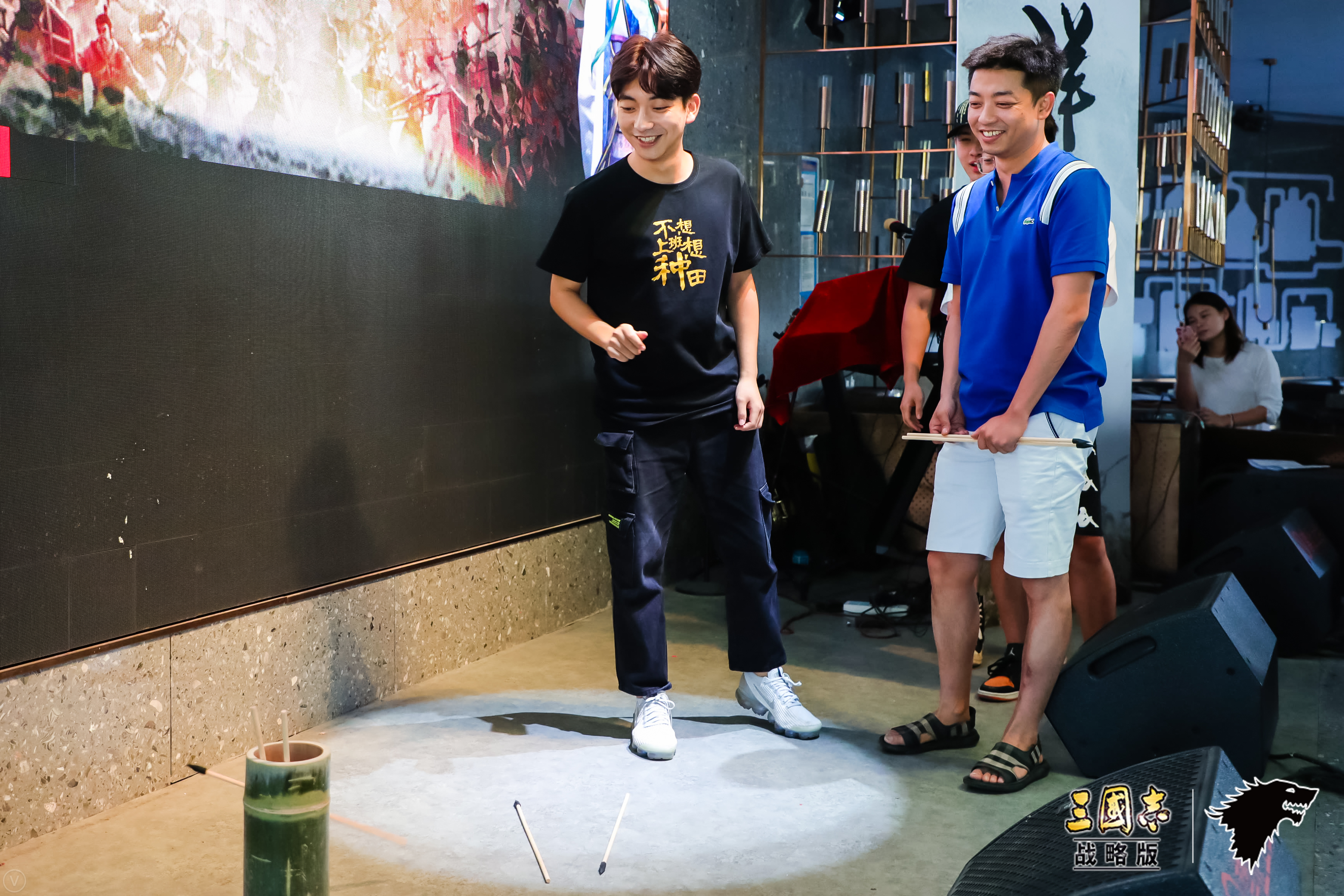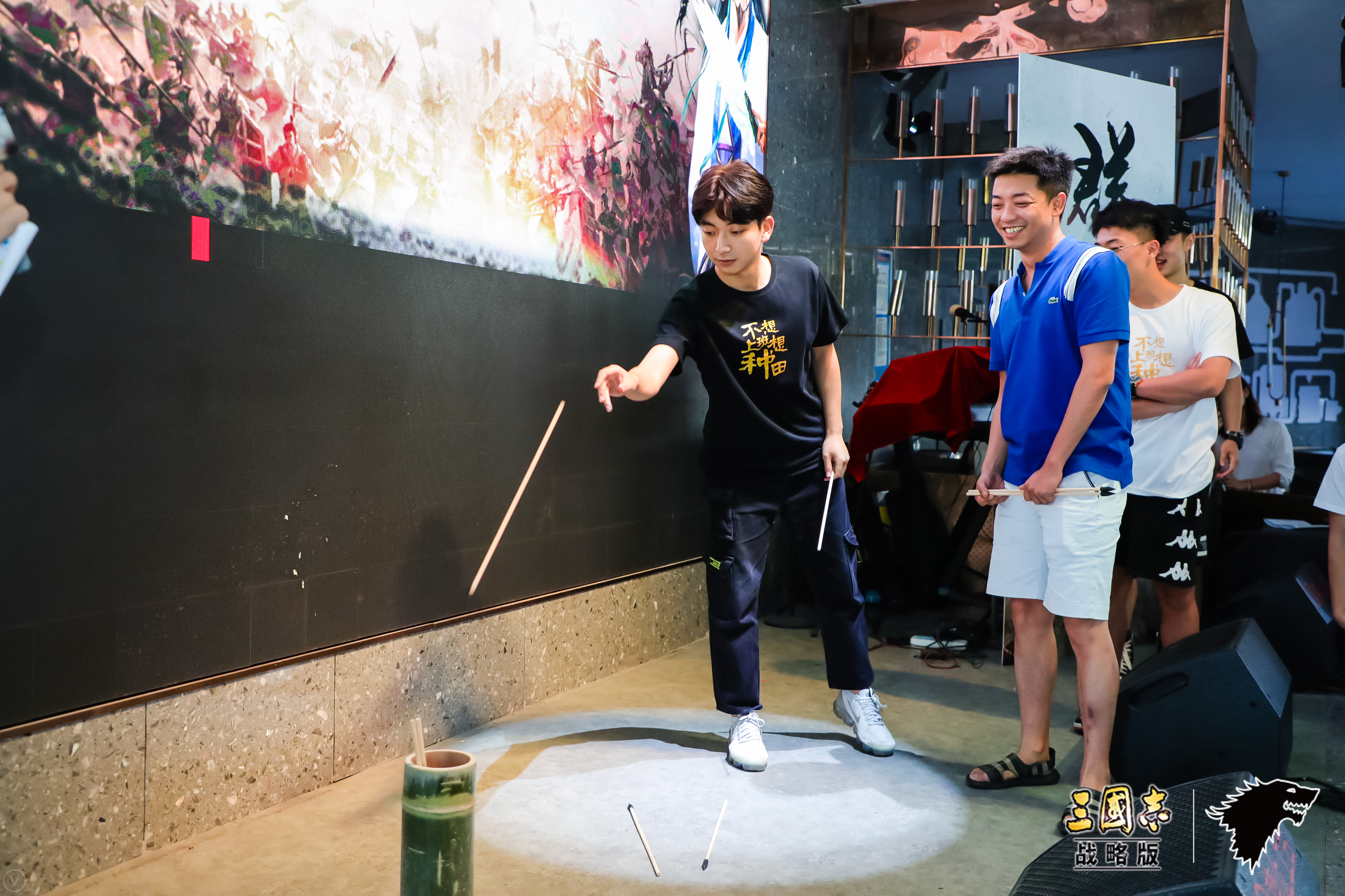 本次聚会出现了紧张刺激的投壶环节,作为一个流行于三国、魏晋时期的贵族项目,三国志迷们显然对它了若指掌。比赛开始前,看着距离壶不到3尺的距离,盟友们纷纷夸下海口号称要全中,没想到第一位选手上来就是连续打铁致敬米兰的小铁匠,引得台下盟友哄堂大笑。最后还是盟主【北境刺你一脸】梅开二度,为他们组立下了汗马功劳。作为同盟四个赛季的主心骨,盟主凭一已之力改变了局势,夺得了精美周边。