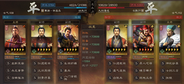 在这支队伍里,其实【胜而益强】会更适合些,但因为本篇文章里,孙权用的是谋略型突击战法,从而导致【胜而益强】的收益锐减,所以最终还是取【一鼓作气】为最佳。